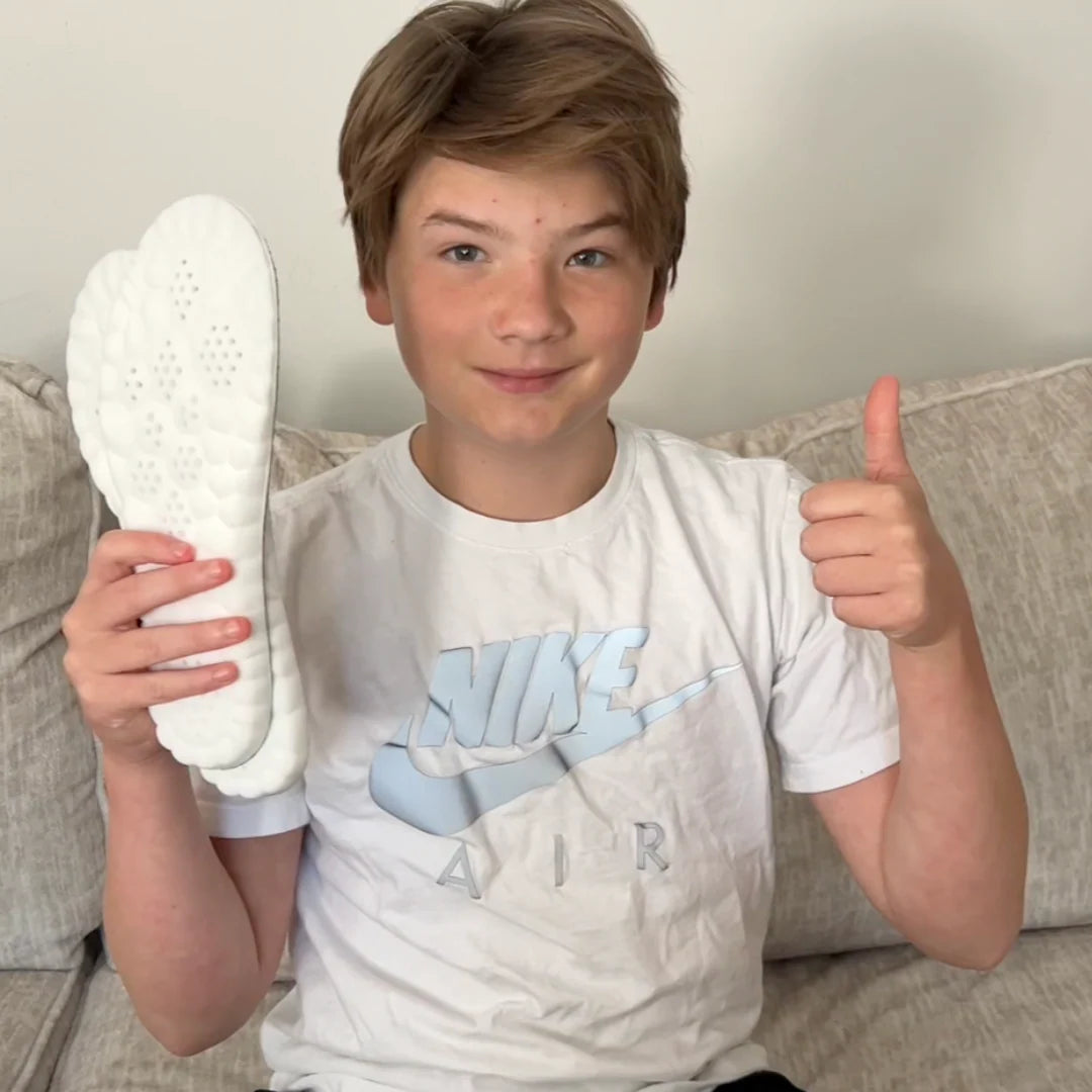 I modsætning til almindelige indlægssåler er de designet til at støtte børn og unge under lange skoledage, sport og vækstspurt — uden at være klodsede eller ubehagelige.