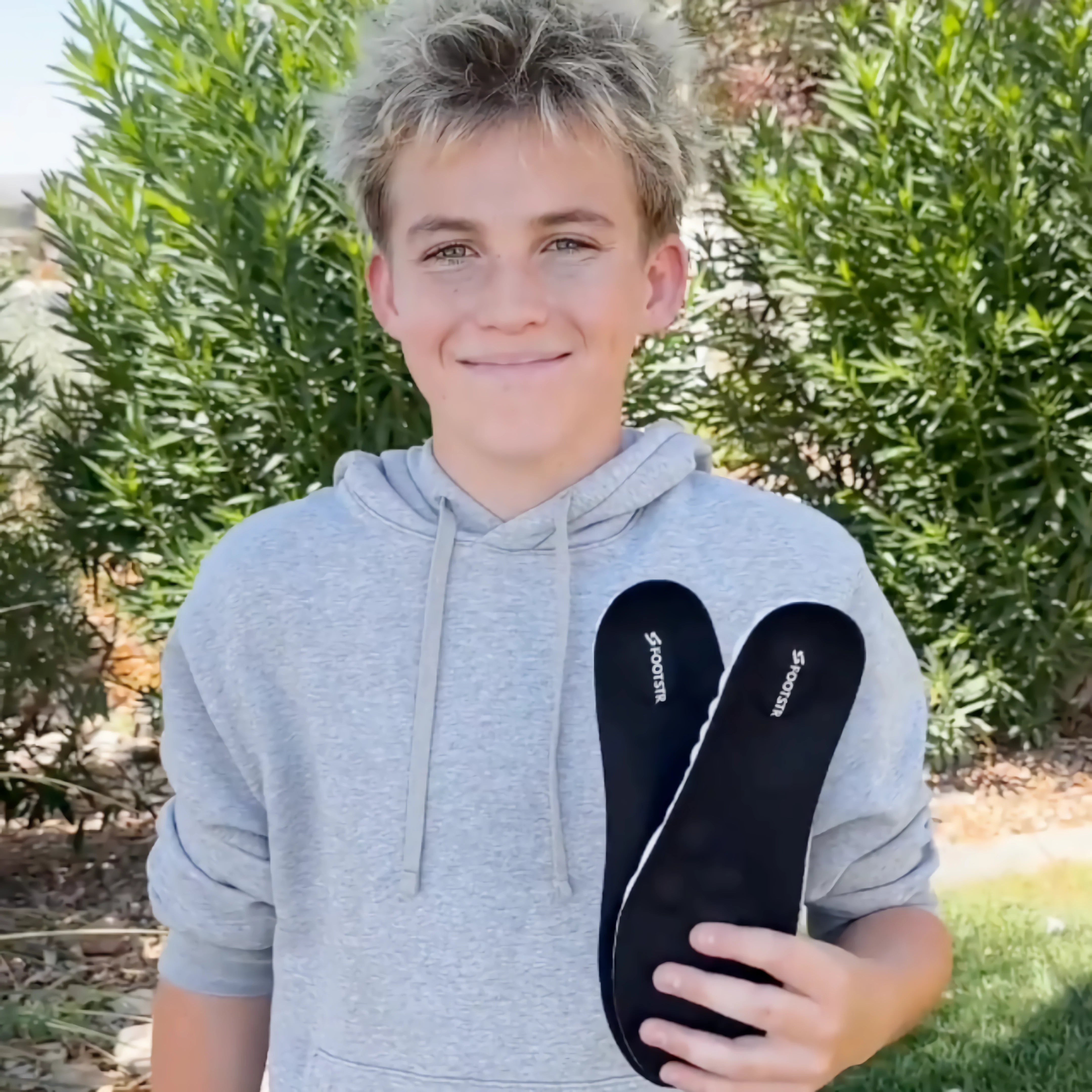 Indersål X indlægssåler er designet til at lindre almindelige smertepunkter hos børn og teenagere, der er i vækst — herunder smerter i hælen, ømme fodbuer, ømme knæ og endda ubehag i hofterne eller lænden.